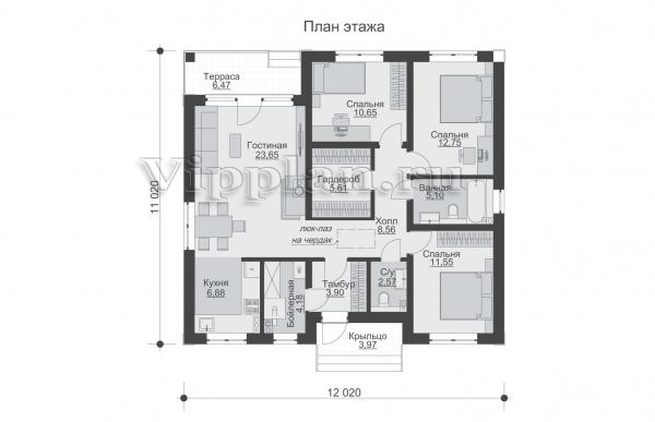 | Размеры дома: | 12.02м×11.02м |
